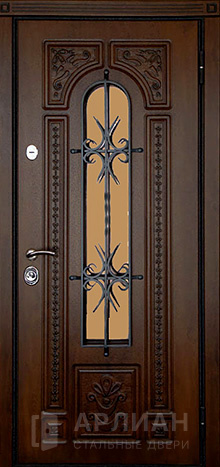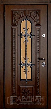 Утепленная входная дверь для коттеджа с кованными элементами №28